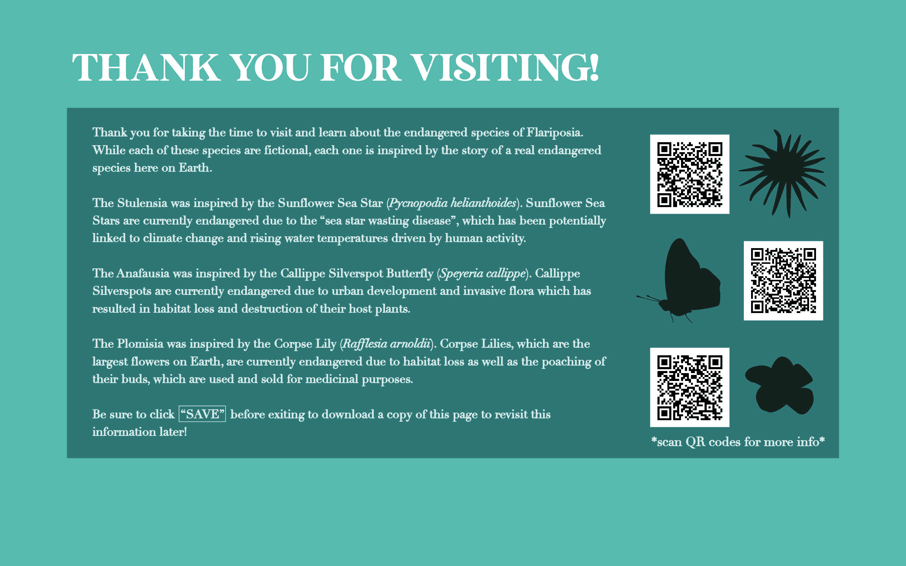 An interactive museum experience showcasing three endangered species in the fictional world, Flariposia.