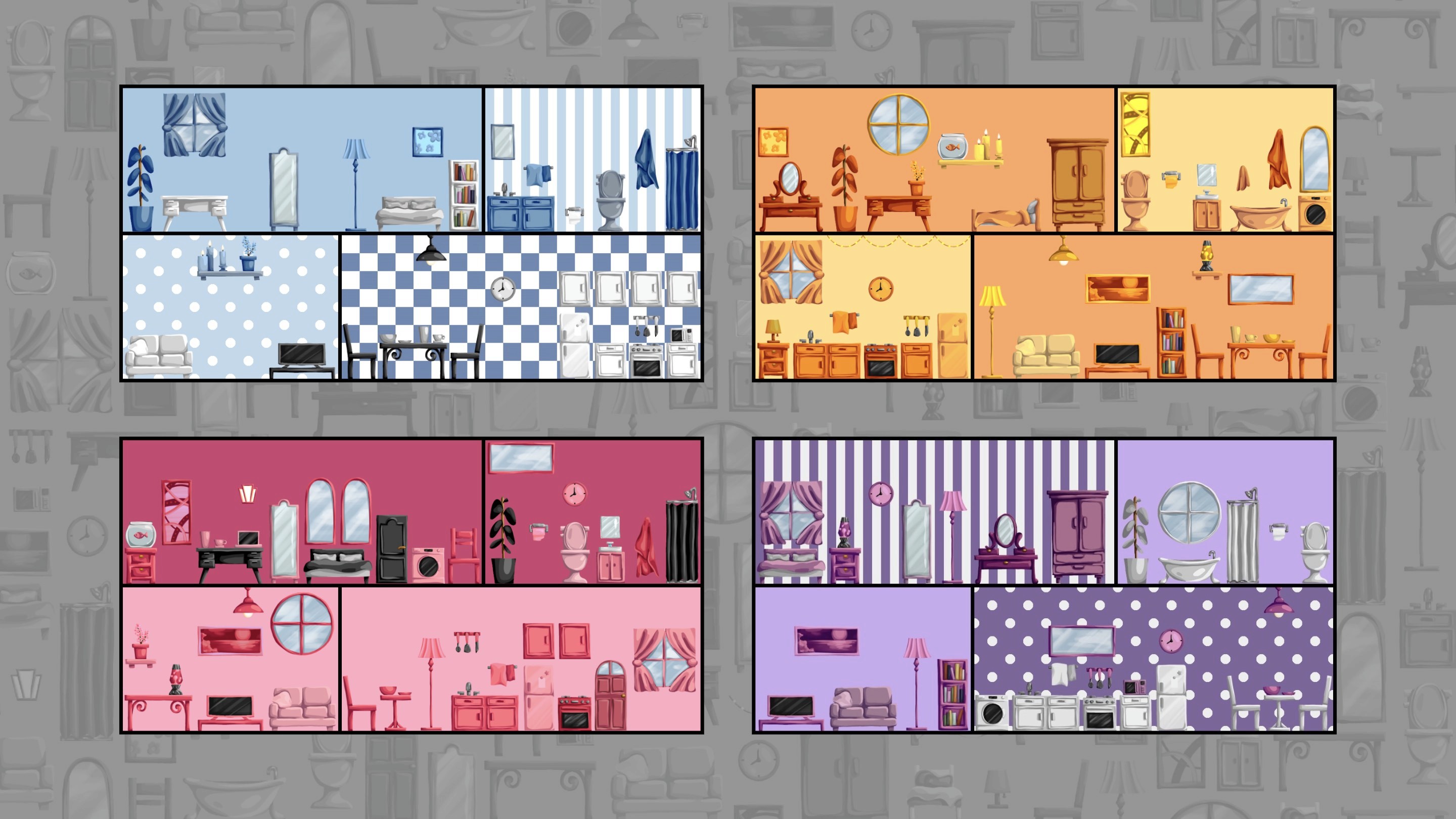 Users can decorate their apartments in a variety of ways. They can use as many or as little colors as they like.
