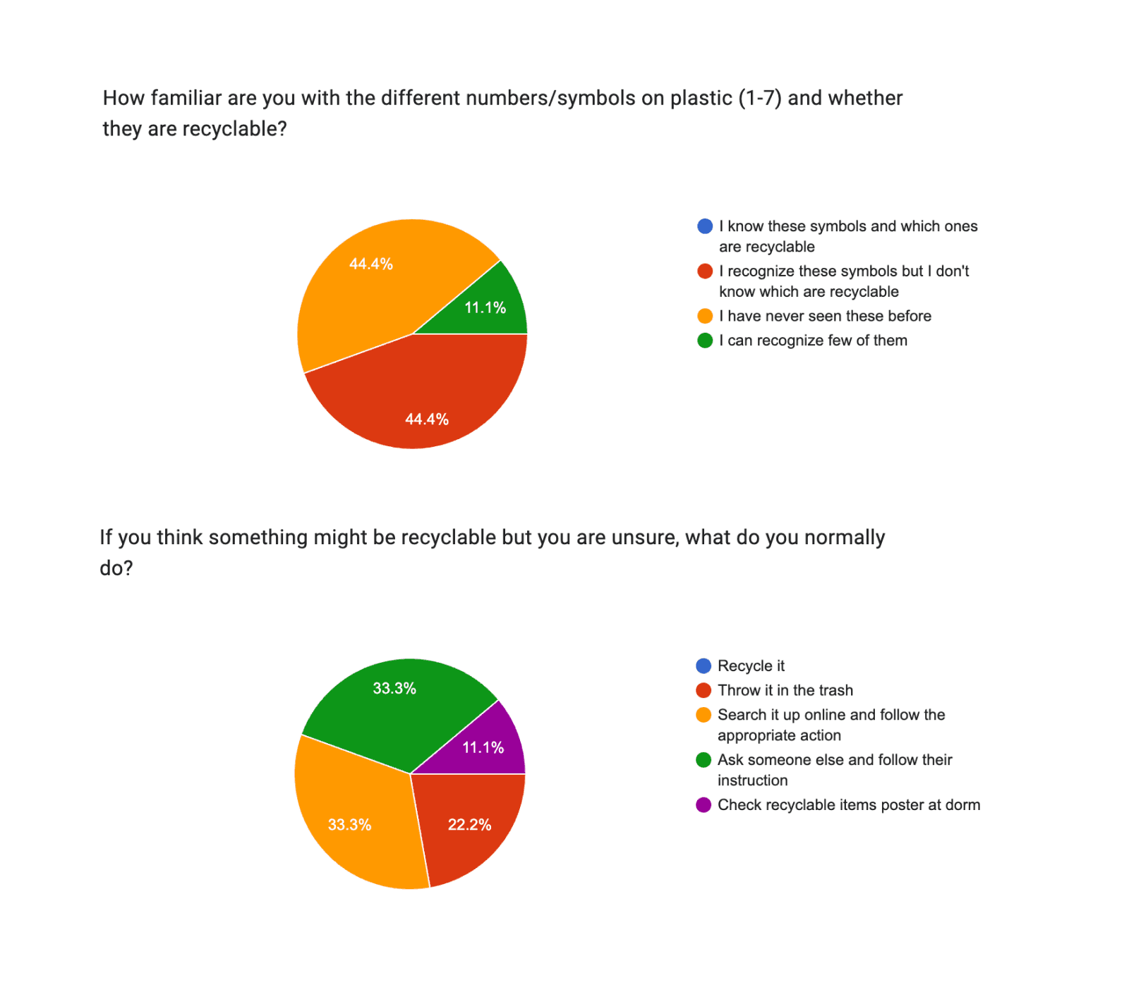 People believe recycling is important, but they mainly value convenience. Many are confused about recycling guidelines and know very little about location specificity and recycling numbers on plastics. Most people said they had accidentally recycled something not recyclable. Everyone felt like they were positively contributing to the environment when they recycled versus putting something in the trash.