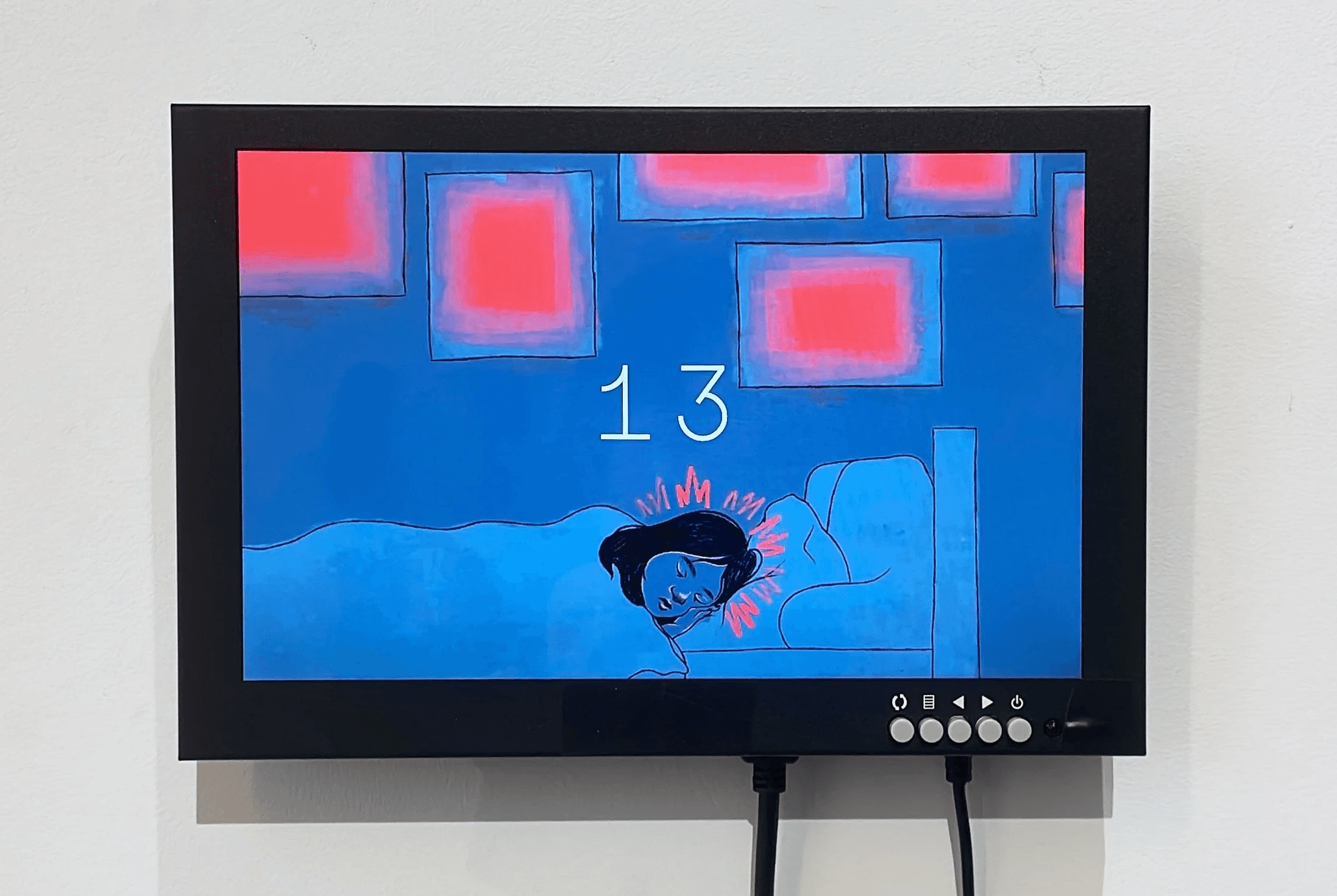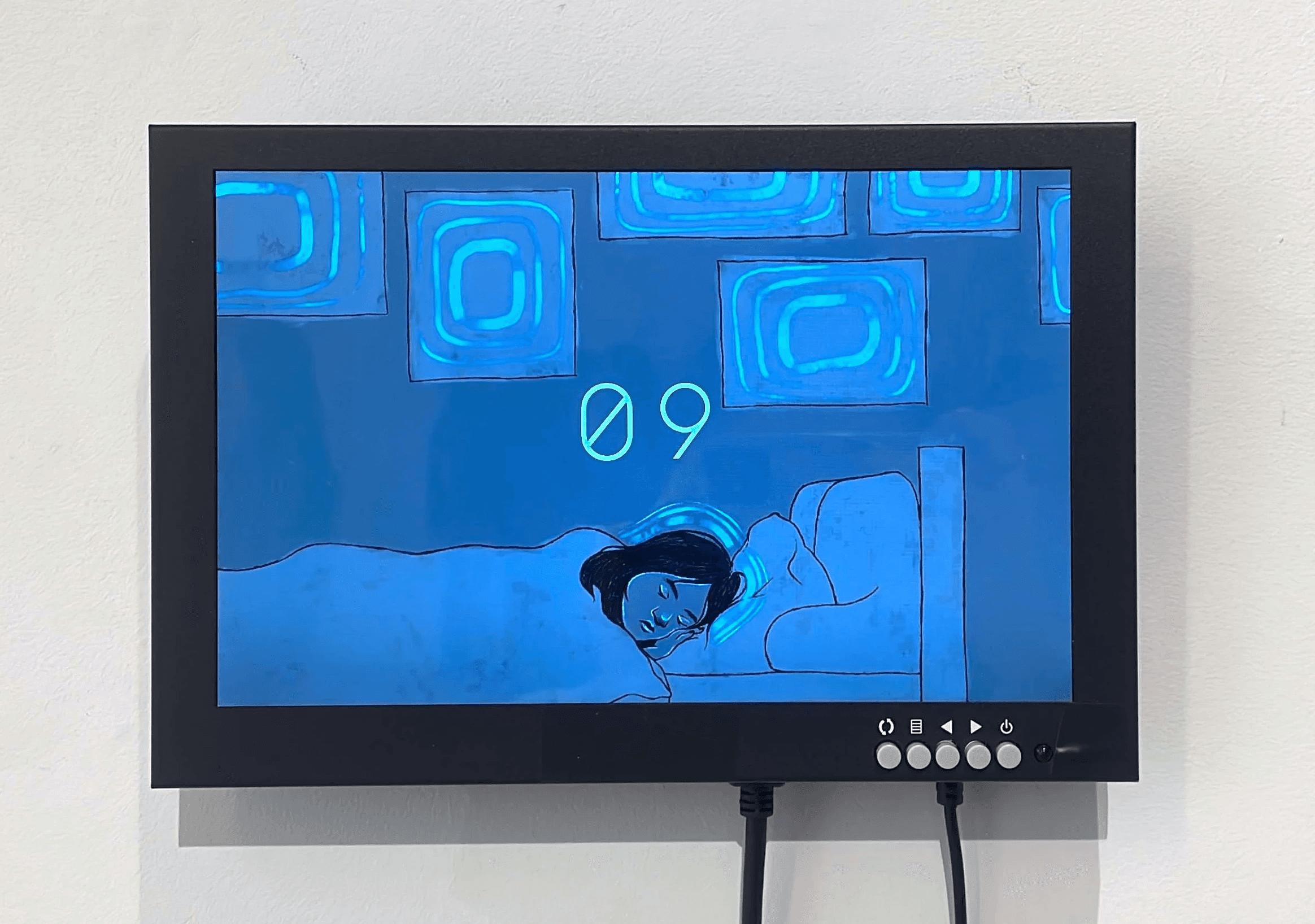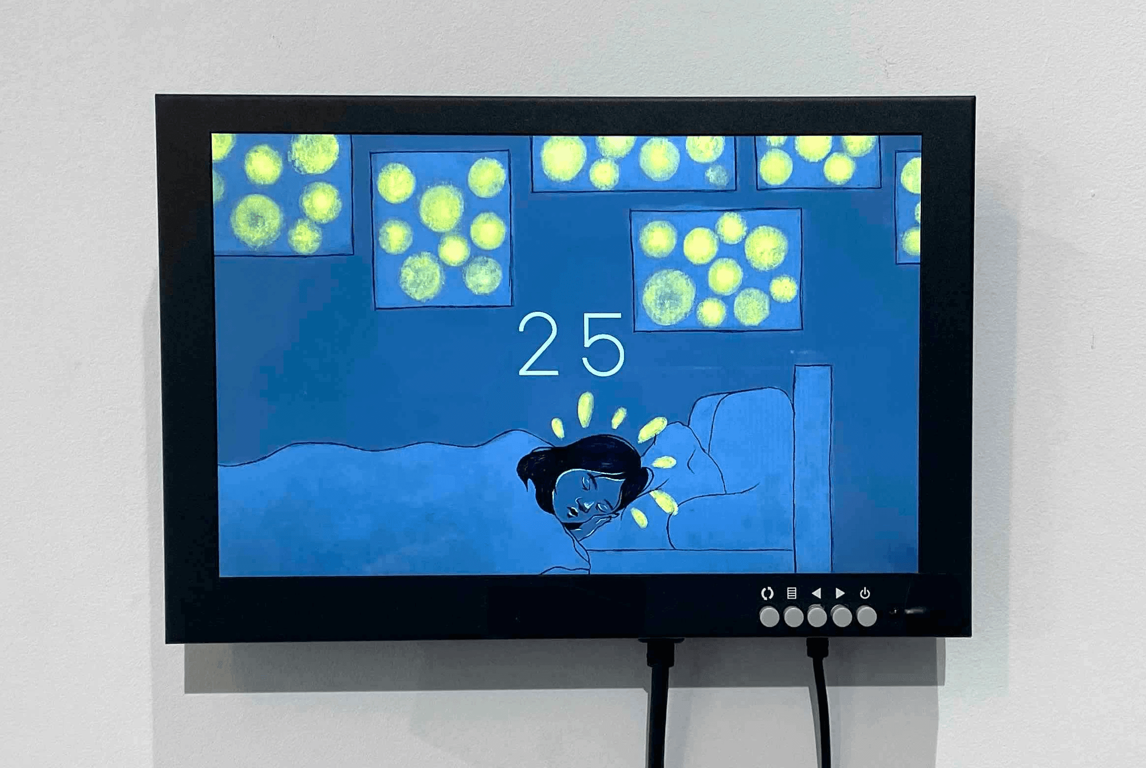 Through this project, I learned about the development of a gallery show and the technical process of installation. When developing the website, I made considerations on how the website could remain dynamic without user input, with the random triggering of animations. Rather than displaying the website on a laptop with a keyboard that might prompt interaction, I wall-mounted a monitor that was connected to a Mac Mini, ensuring the installation matched the expected user experience.